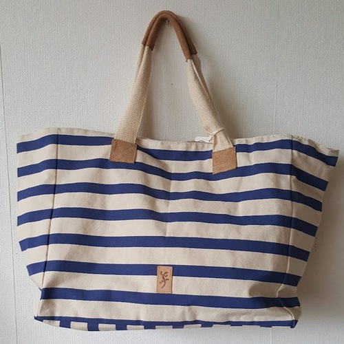 Colección de playa Marinera. Material: Loneta. Bolsa de playa XL: 43x35x20 cm Dispone de bolso interior y asas de piel